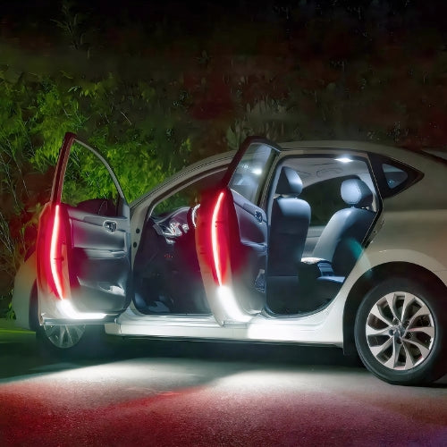The Car LED Lights StroboDoor™ combines advanced LED technology with a sleek, flexible strip design to create a lighting solution that's both practical and visually stunning. These lights feature a dual-colour system, with white lights that illuminate consistently when your door is open, and red lights that strobe and flicker to catch attention and warn approaching traffic or pedestrians.